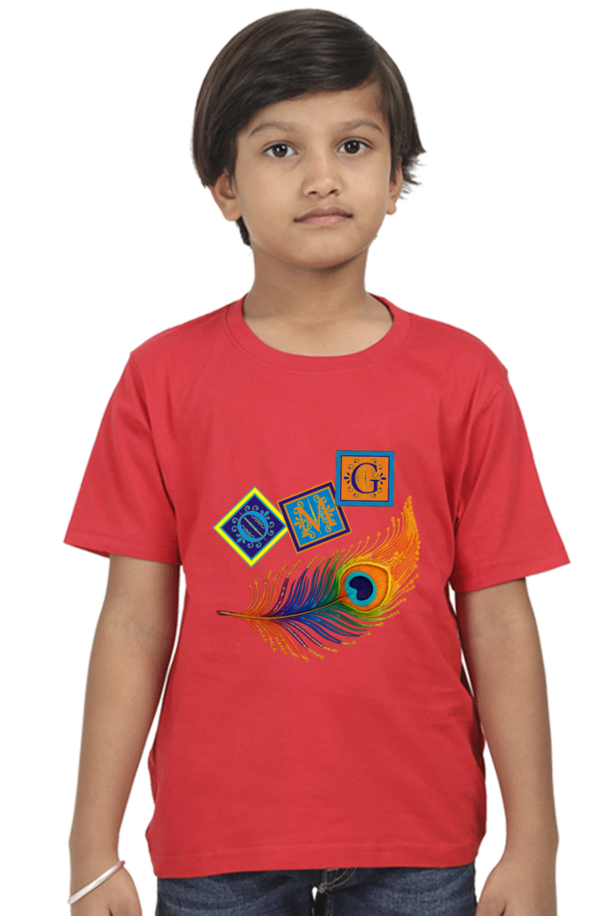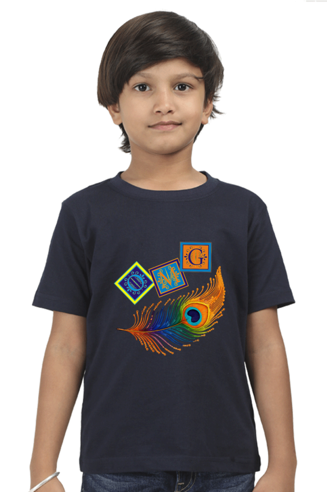 Celebrate innocence and Indian tradition with our Navy Blue Classic Crew T-Shirt for baby boys aged 0 to 12 months. Printed with the fun “OMG” text and themed around the graceful peacock feather — a symbol deeply associated with Lord Krishna — this t-shirt is a vibrant mix of heritage and cuteness.